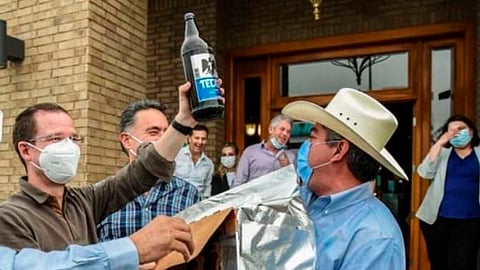 Coahuila (MiMorelia.com).- Con un cartón de caguamas, el alcalde de Monclova, Coahuila, Alfredo Paredes, recibió a Ricardo Anaya durante una visita al municipio luego de que el excandidato presidencial panista criticara el consumo de esta bebida entre la población.
