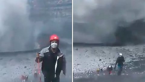 A través de redes sociales se dio a conocer un video en donde se ve a los alpinistas muy cerca del domo del Popocatépetl, y en ese momento sale gas y ceniza. Se desconoce de cuándo datan dichas imágenes.