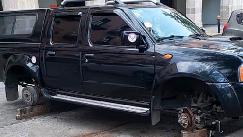 Morelia, Michoacán (MiMorelia.com).- La mañana de este viernes informaron el robo a una camioneta que estaba en el estacionamiento de la Plaza Jardín Morelos, conocida como "El Caballito"; al parecer se llevaron las cuatro llantas con sus respectivos rines.