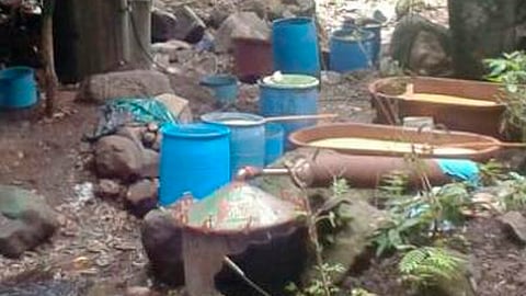 En el lugar se aseguró un bidón con cerca de 55 litros de sustancia química color blanco, 10 tambos color azul con sustancia química que arrojó un total de 2 mil litros, cuatro tambos color azul metálico con 800 litros de sustancia liquida, cinco bultos con sosa cáustica de 25 kilos cada uno, así como un bulto de acetona de cerca 20 kilos.