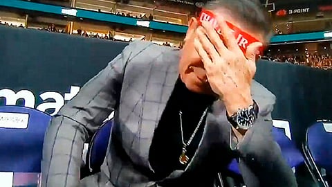 En un video que se difundió en la transmisión de la pelea se pudo observar el momento de su reacción en el que se puso una mano en la cara para ocultar su decepción.