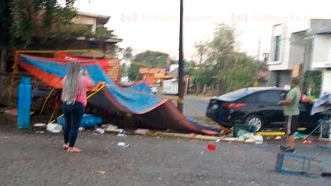 Apatzingán, Michoacán (MiMorelia.com).- Un automóvil compacto chocó contra un puesto de comida y lo destrozó totalmente en la colonia La Palmira, del municipio de Apatzingán, pero por fortuna no se registraron pérdidas humanas.