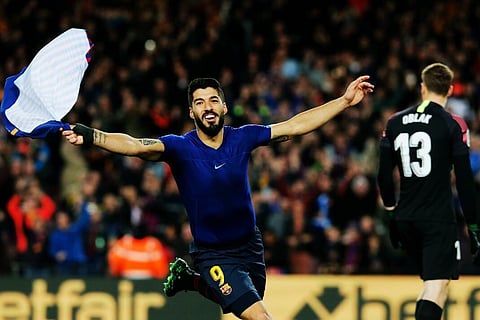 Cuando parecía que el juego se quedaba sin goles, Suárez recibió fuera del área, perfiló y como si estuviera jugando billar colocó la de gajos pegada y pegando en el poste para el agónico 1-0 del Barcelona.