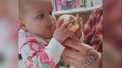En la grabación se puede ver a una pequeña bebé, quien es cargada por su papá, y acto después su madre se acerca con un enorme helado y le da a probar.