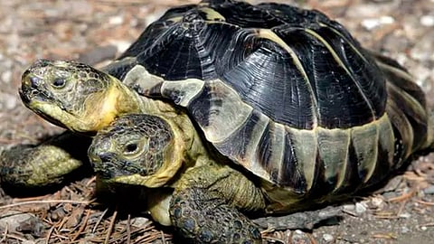 La tortuga tiene cada cabeza independiente pero ambas comparten la misma concha y las mismas cuatro extremidades.