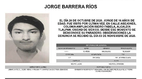 Fue el pasado 26 de octubre que Jorge desapareció después de ser víctima de esta broma que se originó en un grupo escolar de WhatsApp, en el que algunos de sus compañeros dijeron que tenían que ir a la preparatoria a presentar un examen, él acudió a la institución y desde ese día se le busca.