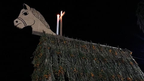 Morelia, Michoacán (MiMorelia.com).- En esta Noche de las Ánimas, en la tenencia de Cuanajo, municipio de Pátzcuaro, resalta una gran figura de un caballo en la plaza principal, mientras sonido de las campanas anuncia la llegada del alma de los difuntos a esta particular localidad.