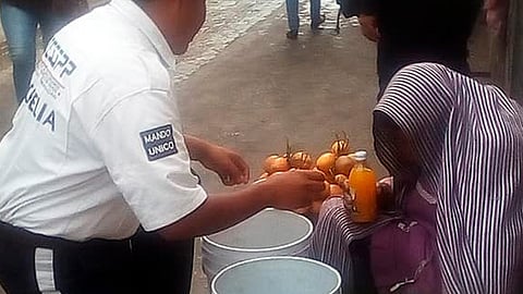 Morelia, Michoacán (MiMorelia.com/Redacción).- Un cadete fue captado en los momentos cuando regaló alimentos a personas de escasos recursos que piden limosna en el centro de Morelia.