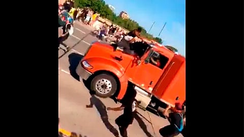 Estados Unidos (Rasainforma.com).- La tarde de este domingo continuaron las protestas por el fallecimiento de George Floyd, sin embargo un camión cisterna irrumpió una movilización y trató de embestir a los ahí presentes.