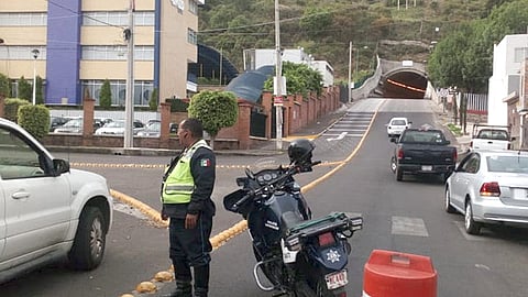 Al inicio del túnel 1 en la colonia Ocolusen, agentes de Tránsito mantienen cerrada la circulación y solo hay acceso para quienes radican en los fraccionamientos que se encuentran en inmediaciones del Ramal Camelinas.