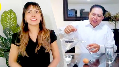 Finalmente Armando Granados Martínez explica qué es la densidad utilizando distintos materiales que se encuentran en la cocina, como vasos, agua, un huevo y sal.