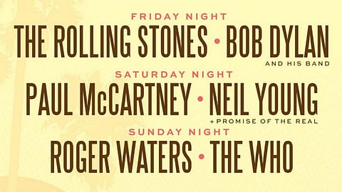Los otros días son igual de impactantes, Paul McCartney y Neil Young tocarán ante miles de personas en el recinto especialmente creado para este show en California. Y el propio domingo cerrarán los bad boys británicos de The Who y el reciente presente en el Zócalo capitalino: Roger Waters.