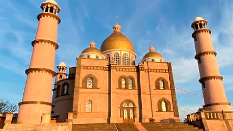 El templo está compuesto por cuatro torres coronadas de cuatro cúpulas y una quinta más grande al centro, los arcos fueron vestidos de grandes vitrales que contrastan con los diversos detalles neoclásicos. Sus minaretes y cúpulas doradas harían pensar que cualquiera que se trata de una mezquita.