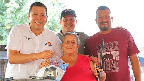 En Pinzándaro, la entrega de apoyos consiste en 50 láminas, 2 cubetas de pintura, 50 apoyos alimentarios y 1 rollo de malla ciclónica.