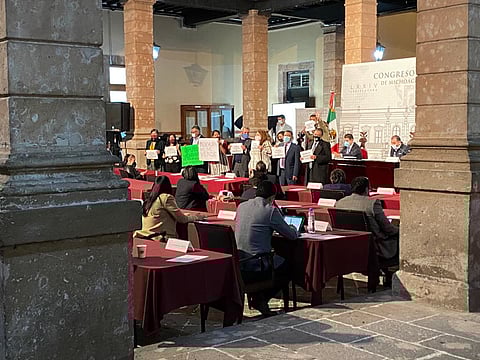 Morelia, Michoacán (MiMorelia.com).- Con 26 votos a favor y 12 en contra, de la bancada de Morena, legisladores locales aprobaron el decreto de Reforma al artículo 26 de la Ley de Ingresos del Estado para el ejercicio fiscal 2020, por medio de la cual se convalida la votación con la que en diciembre del año pasado se autorizó a la administración estatal la contratación de financiamiento por 4 mil 090 millones de pesos para la ejecución de obra productiva.