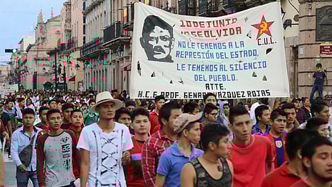 La represión denunciada por estudiantes de la Normal de Tiripetío en Aguascalientes también forma parte de las denuncias de los manifestantes de esta tarde.