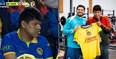 Morelia, Michoacán (MiMorelia.com).- El Club América recibió al aficionado que se convirtió en "meme" involuntariamente durante del partido de ida de la semifinal contra Cruz Azul.