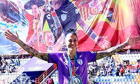 Pachuca, Hidalgo (MiMorelia.com).- La delantera de Pachuca, Jennifer Hermoso recibió un homenaje este domingo en el Estadio Hidalgo, tras quedar campeona del mundo con la selección de España en Australia Nueva Zelanda 2023.