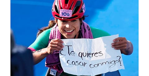 Pese al resultado que tuvo en la competencia, la atleta no titubeó para proponerle matrimonio a su novia Jessica González quien es su entrenadora.