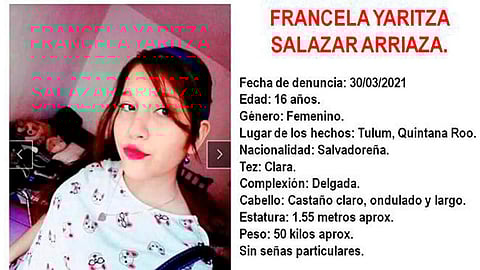 Tulum, Quintana Roo (MiMorelia.com).- La Fiscalía General de Quintana Roo activó la Alerta Amber tras la desaparición de la hija mayor de Victoria Esperanza Salazar, mujer que fue asesinada a manos de policías en Tulum.