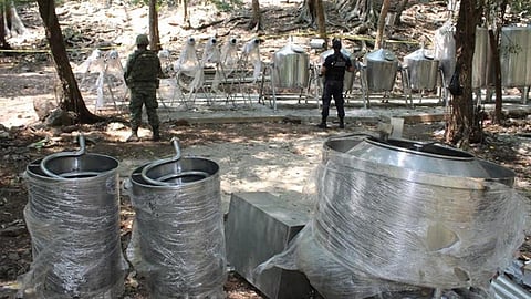 En el sitio fueron asegurados 12 contenedores de diferentes tamaños, reactores condensadores y diversos implementos de los utilizados para la fabricación de la droga conocida como crystal. Se informó que la narcococina contaba con un 90 por ciento de su instalación y sólo faltaba colocarle los medidores de presión a las ollas para comenzar a operar.