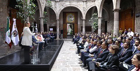 Flanqueada en su mayoría por un presídium conformado por mujeres, la rectora manifestó su satisfacción por el hecho de que por primera vez en la historia de México lleguen las mujeres a conducir los destinos de esta nación, tras la toma de protesta de la doctora Claudia Sheinbaum Pardo como presidenta de la República. “Y digo llegamos porque así lo señaló la presidenta de nuestro país, señaló que no llega sola, llegamos todas”.