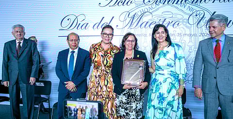 Con un auditorio lleno de profesoras y profesores nicolaitas, la rectora destacó que este día se reconoce una figura que al paso de los tiempos alimenta la enseñanza y la fe de que siempre los mejores tiempos están por venir.