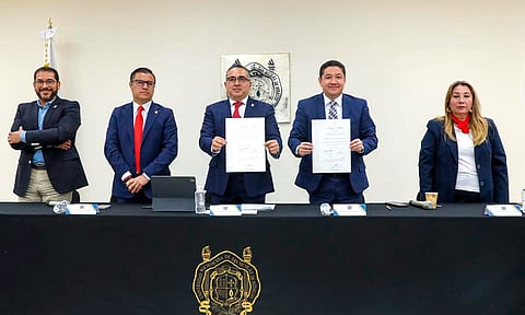 El acuerdo fue firmado por el tesorero de la Máxima Casa de Estudios, Enrique Eduardo Román García, en representación de la rectora Yarabí Ávila González; por el secretario general, Javier Cervantes Rodríguez; por el titular del TJAM, Hugo Alberto Gama Coria; por el presidente del CPC y del Comité Coordinador del Sistema Estatal Anticorrupción, Víctor Hugo Vieyra Avilés y por la contralora de la UMSNH, Ana Delia Quintero Cervantes.