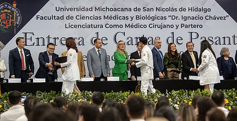 Morelia, Michoacán (MiMorelia.com).- “Hoy, están aquí y lo lograron con el alma llena de orgullo, y quiero felicitar de todo corazón a todos ustedes, porque son testimonio vivo de que los sueños se alcanzan”, afirmó la rectora de la Universidad Michoacana de San Nicolás de Hidalgo (UMSNH), Yarabí Ávila González, al hacer entrega de cartas de pasante a integrantes de la generación 2020-2025 de la Licenciatura como Médico Cirujano, dependiente de la Facultad de Ciencias Médicas y Biológicas.
