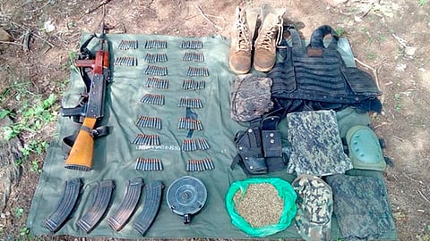 Oficiales de la Policía Michoacán en coordinación con personal del Ejército Mexicano realizaban labores operativas sobre la localidad de Agua Fría, cuando localizaron un fusil calibre 7.62X39 mm., los cartuchos útiles, cinco cargadores, así como equipo táctico, los cuales se encontraban aparentemente en situación de abandono.