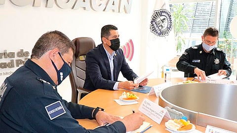 Morelia, Michoacán (MiMorelia.com).- El secretario de Seguridad Pública (SSP), Israel Patrón Reyes, encabezó una reunión de trabajo con los mandos regionales y de la División Estatal de Caminos, a fin de reforzar los protocolos de actuación de los elementos policiales y mantener firmes las acciones de combate al delito.