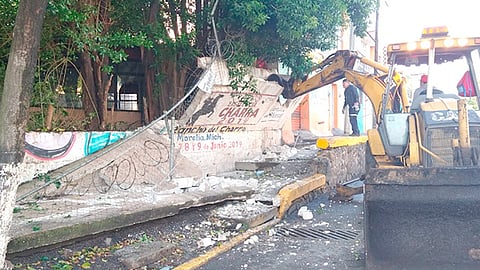 Acompañados de dos miembros de la Policía Morelia para guiar el tráfico, el personal de la SUOP acudió para derribar la barda y recoger el escombro, dejando el área lista para que se pueda levantar una nueva.