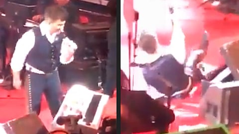 León, Guanajuato (MiMorelia.com/Redacción).- Una vez más el cantante Alejandro Fernandez ha dado de qué hablar y es que en su presentación en el Palenque de la Feria de León se cayó de borracho (literalmente).