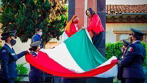 Señaló que el mes patrio es propicio para sentirnos orgullosos de nuestras raíces, para retomar los valores y el fervor cívico, así como para fortalecer los lazos de unión familiar. En el izamiento participó la escolta Femenil de la Secretaría de Seguridad Pública, Tránsito y Vialidad Municipal, además de la Banda de Guerra Ligres.