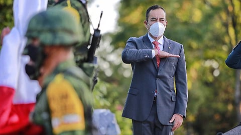 Morelia, Michoacán (MiMorelia.com).- El secretario de Gobierno, Carlos Herrera Tello encabezó el izamiento de la Bandera Nacional con motivo del CCX Aniversario del Inicio de la Guerra de Independencia de México.