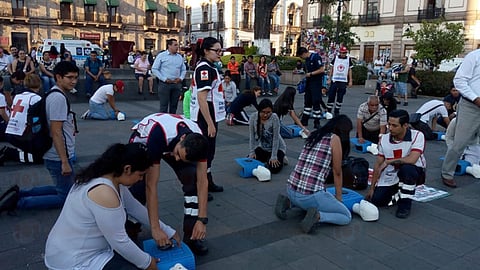 Morelia, Michoacán (MiMorelia.com).- La tarde de este sábado, arrancó en la plaza Melchor Ocampo de Morelia una serie de cursos sobre reanimación cardiopulmonar, para que la población sepa cómo ayudar a alguna persona que esté padeciendo un ataque al corazón.
