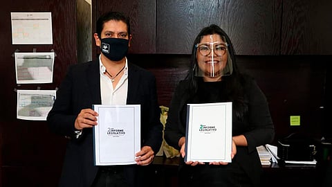 Con las medidas sanitarias emitidas por las autoridades en salud, Ernesto Núñez entregó de manera personal el documento a la diputada presidenta del Congreso, Brenda Fraga Gutiérrez, el cual constata los cerca de 25 asuntos, entre iniciativas, posicionamientos y reformas presentadas en los últimos meses.