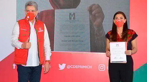 Morelia, Michoacán (MiMorelia.com).- El presidente del Comité Directivo Estatal (CDE) del Partido Revolucionario Institucional (PRI) en Michoacán, Jesús Hernández Peña, entregó los nombramientos provisionales a Fernando Castro Ventura y a Karla Yadira Cruz Cuevas, como Presidente y Secretaria General del Comité Municipal en Morelia.