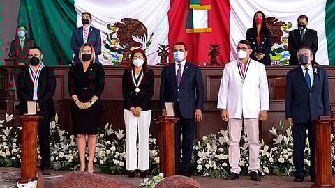 La condecoración fue entregada por los diputados Osiel Equihua y Yarabí Ávila, vicepresidente y primer secretaria, respectivamente, de la Mesa Directiva del Congreso local, así como por el Titular del Poder Ejecutivo del Estado, Silvano Aureoles Conejo.