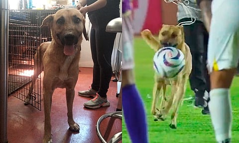 Fue tanta la emoción del amigo de cuatro patas que no dudó en agarrar el balón y se echó a correr por toda la cancha, por lo que jugadores y varias personas de apoyo del estadio lo persiguieron, pero nadie pudo detenerlo.