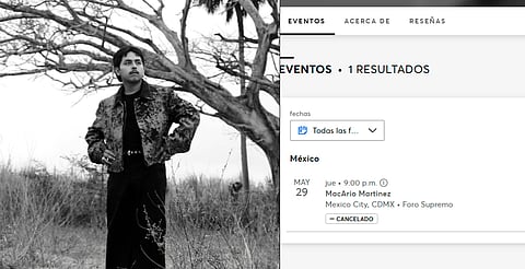 Morelia, Michoacán (MiMorelia.com).- El cantante Macario Martínez, quien ganó notoriedad en redes sociales por su tema “Sueña lindo corazón”, tenía programado un concierto el próximo 29 de mayo en el Foro Supremo de la Ciudad de México. Sin embargo, la boletera Ticketmaster ha marcado el evento como cancelado en su sitio oficial, sin ofrecer detalles adicionales.