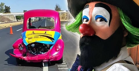 Morelia, Michoacán (MiMorelia.com).- El Payaso Loquillo, conocido por su carisma y su icónico vocho multicolor, sufrió un accidente vial en Jalisco luego de que supuestamente una camioneta Nissan NP300, perteneciente a la empresa MEOSA, impactara su vehículo.