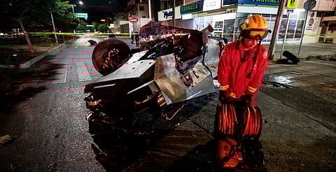 En las imágenes difundidas en redes sociales se aprecia el vehículo volcado y deshecho en la carpeta asfáltica, mientras paramédicos realizan labores de rescate.