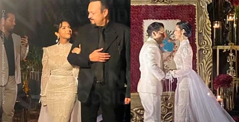 Al poco tiempo también fueron filtradas las primeras fotos por la periodista Maxine Woodside, donde se observa que Pepe Aguilar entregó a su hija en el altar.