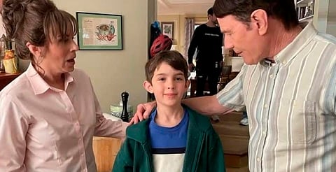 La foto muestra a tres personajes: Lois (Jane Kaczmarek), Hal (Bryan Cranston) y un niño misterioso que ha desatado especulaciones, ya que no es Jamie, el menor conocido de la familia.