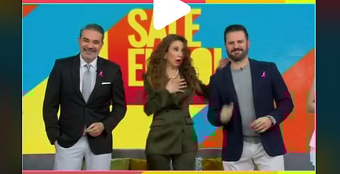 En el video se aprecia que los conductores se estaban saludando cuando el escote de Ingrid Coronado se abrió, lo que dejó expuesto sólo un poco el pecho de la presentadora.