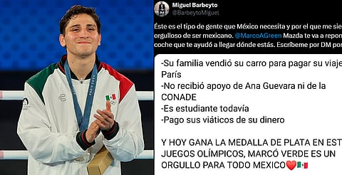Morelia, Michoacán (MiMorelia.com).- El medallista olímpico Marco Verde recibiría un carro nuevo de la marca Mazda, luego de que supuestamente vendiera su vehículo para poder cubrir los gastos en los Juegos Olímpicos de París 2024.