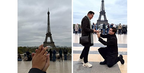 Morelia, Michoacán (MiMorelia.com).- En un momento cargado de emoción, amor y simbolismo, el periodista y conductor Mariano Riva Palacio sorprendió a su pareja, Alan Biancci, al pedirle matrimonio frente a uno de los monumentos más icónicos del mundo: la Torre Eiffel, en París.