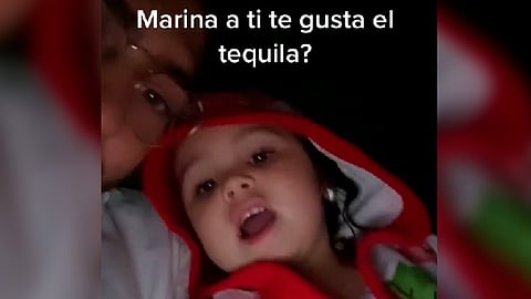 "Marina, ¿a ti te gusta el tequila", le pregunta el joven a la niña, quien sin dudarlo respondió "a mí no me gusta... a mí me encanta".
