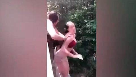 Estados Unidos (Rasainforma.com).- Lo que parecía una broma no terminó nada bien y es que sin medir consecuencias una joven fue lanzada desde un puente al precipicio, lo que la dejó con severas lesiones.